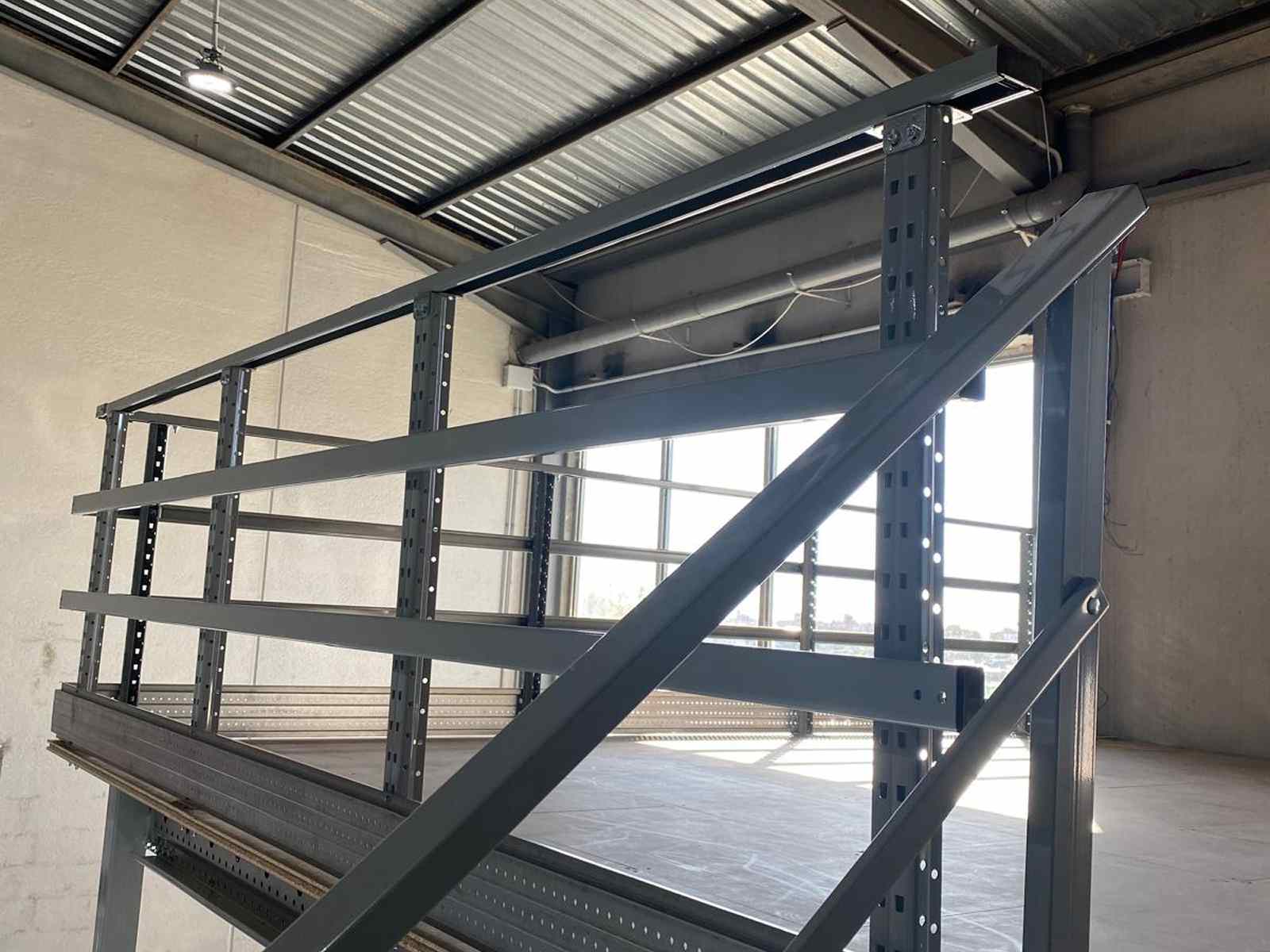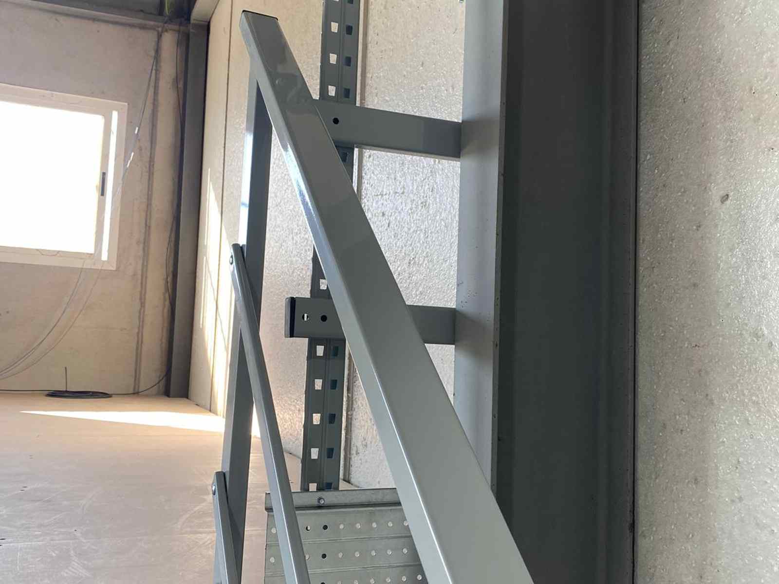 Para optimizar el espacio al máximo, se ha diseñado un altillo metálico de 2.730mm de altura, con una superficie aproximadamente de 23.52m² y con un suelo estructural machihembrado de 30mm.