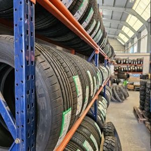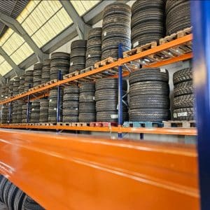 Para dar respuesta a las necesidades del cliente, en Tecny Stand se implantó un sistema mixto de almacenaje que combina dos soluciones complementarias: estanterías de picking y estanterías de paletización convencional. Las estanterías de picking permiten el acceso directo e individual a cada neumático, lo que facilita enormemente la preparación de pedidos y la gestión de referencias con alta rotación. Este sistema resulta ideal para talleres donde se requiere agilidad en la manipulación diaria del producto.